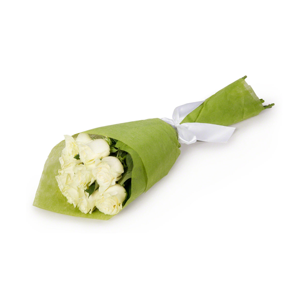Элегантный букет из белоснежных роз в благородной фетровой упаковке — воплощение чистоты и божественной гармонии.