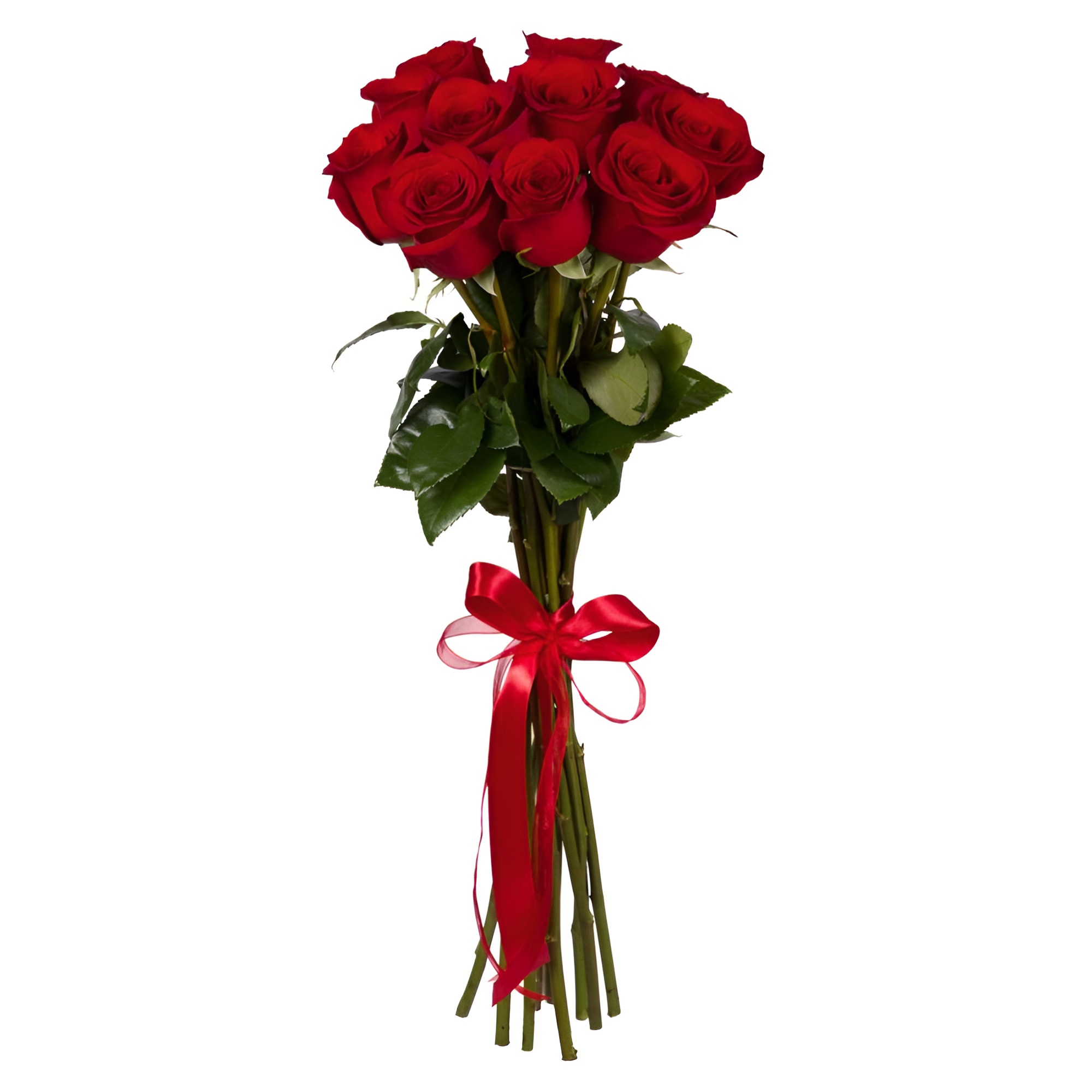 Букет из 9 красных роз с фисташкой – гармония страсти и свежести