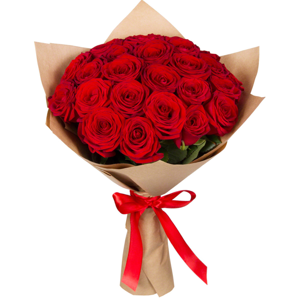 Букет из 25 красных роз в крафт-бумаге